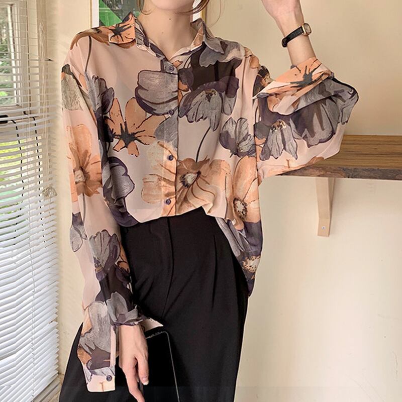 【ブラウス】ブラウス レディース 大人 可愛い トップス 花柄 シャツ ブラウス 韓国 ブラウス 春 夏 秋 冬 20代 30代 40代 シンプル シフォン オフィス レディース 長袖 フォーマル 体型カバー きれいめ S M L XL