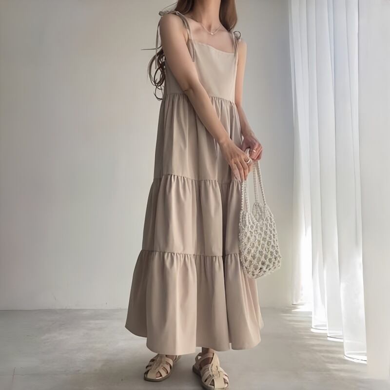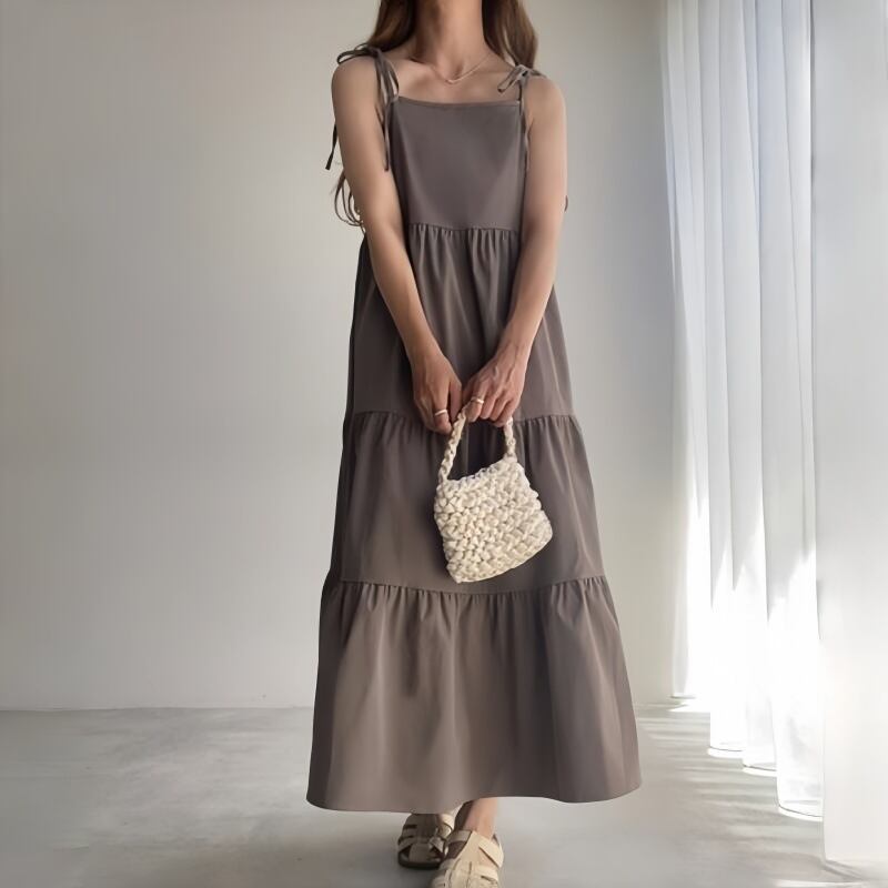 大人可愛いシンプルなティアードキャミワンピース。