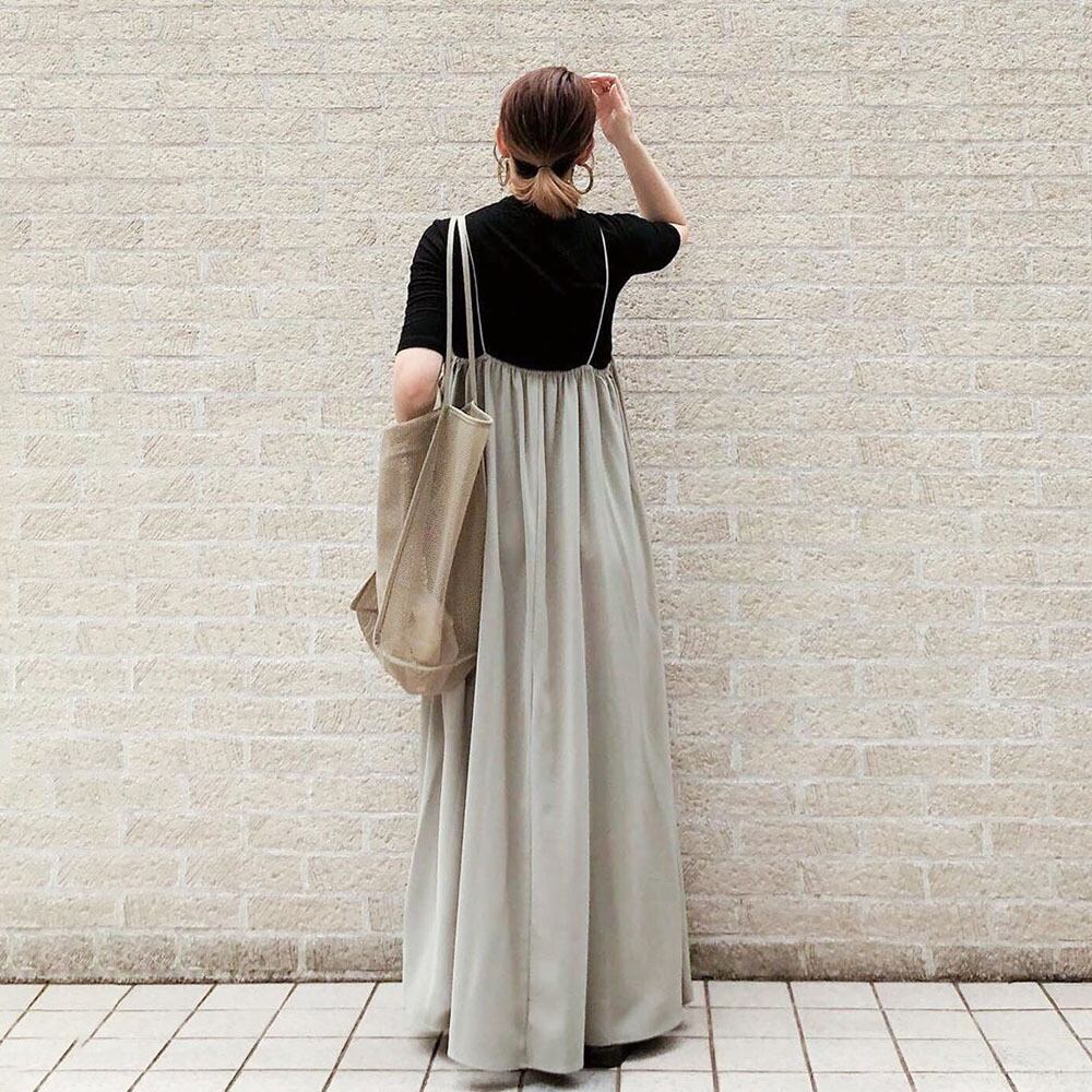 マタニティにもおすすめ!ゆったりシルエットのキャミワンピース。