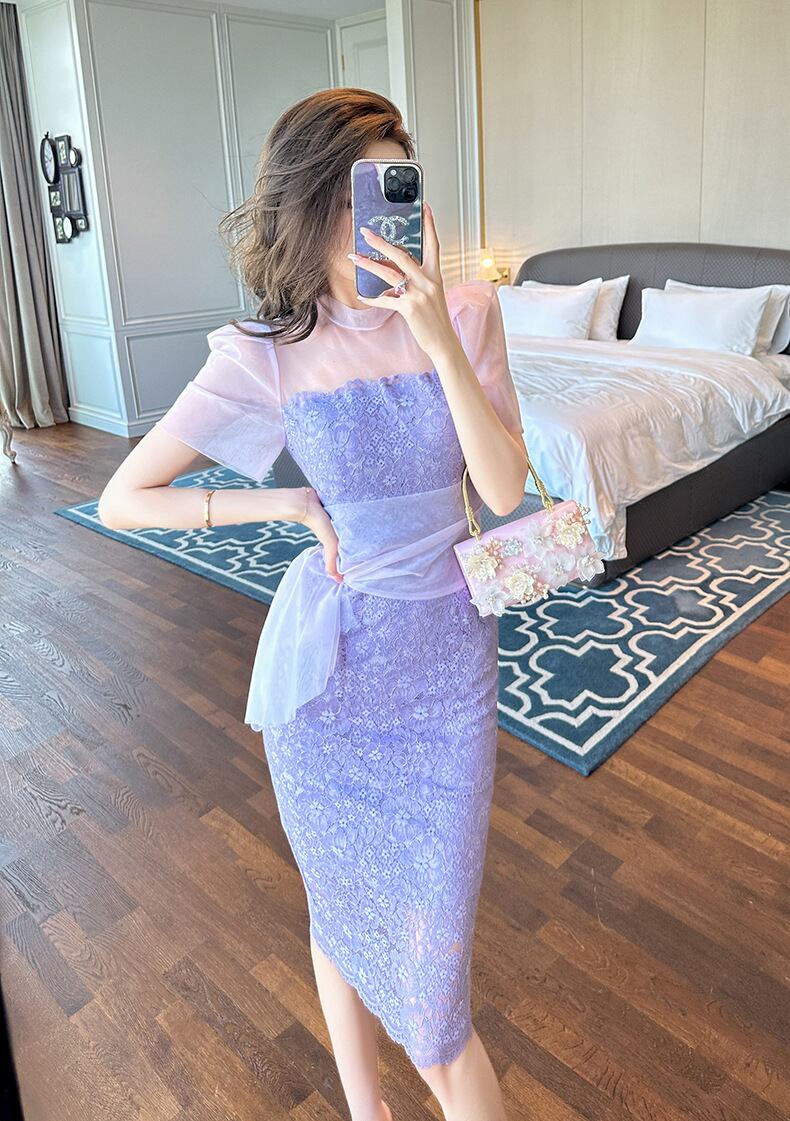 【パーティードレス】パーティードレス 結婚式 卒業式 謝恩会 成人式 同窓会 お呼ばれドレス 結婚式のお呼ばれ ワンピース 黒 ブラック ロングワンピース 20代 30代 40代 ワンピ-ス フォーマルドレス 袖あり ドレス ミディ丈 膝丈 体型カバー フォーマルドレス ドレス 二次会 パーティー お呼ばれ フォーマル 総レース フォーマルワンピース シンプル おしゃれ 個性的 ブラック パープル 紫 S M L