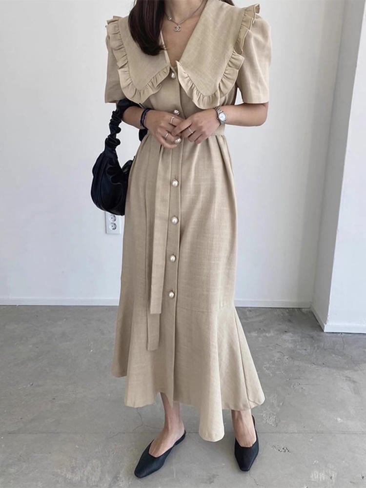 【ワンピース】ワンピース レディース 春 夏 秋 おしゃれ 20代 30代 40代ワンピース 無地 ロングワンピース 婚活 お食事会 顔合わせ 春夏 半袖 五分袖 ロング 韓国 ワンピース ドレス ワンピース 大人 可愛い きれいめ レトロ ベージュ ライトブルー 青 フリーサイズ