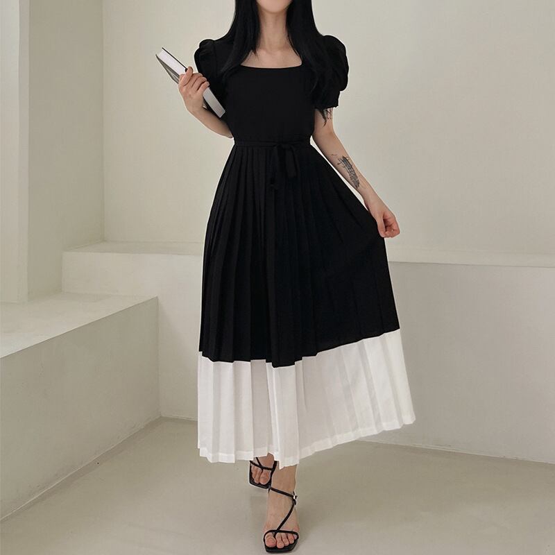 通勤やデートに着たい!バイカラーのプリーツワンピース。