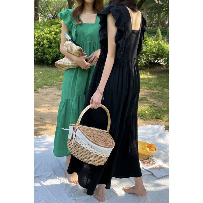 【ワンピース】 ワンピース レディース 春 夏 秋 おしゃれ 20代 30代 40代 ワンピース 無地 ロングワンピース 春夏 マタニティ ワンピース ロング 韓国 ワンピース ドレス ワンピース 大人 可愛い カジュアル きれいめ グリーン 緑 ブラック 黒 フリーサイズ