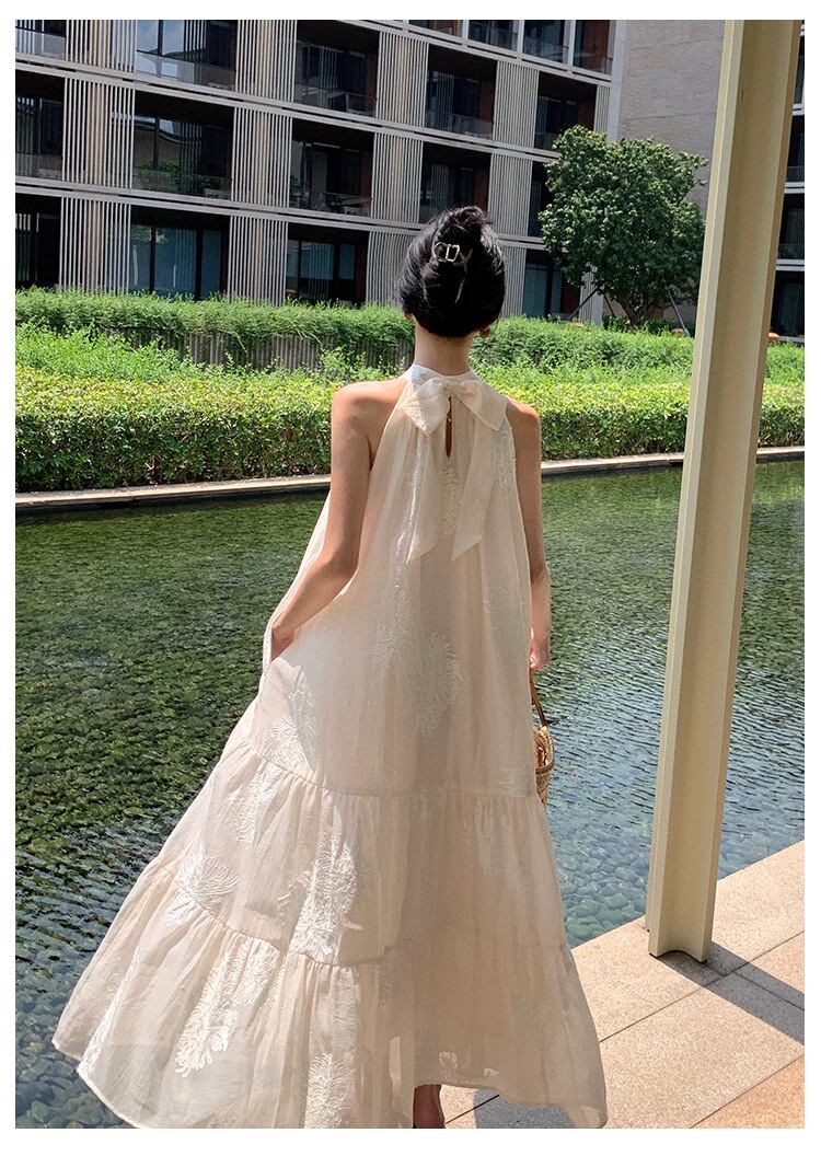 ビーチやリゾートにおすすめ!ホルターネックのティアードワンピース。