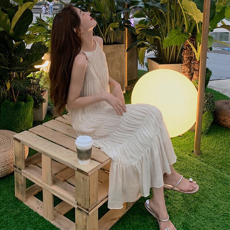 ビーチやリゾートにおすすめ!ホルターネックのティアードワンピース。
