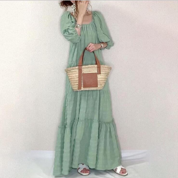 【ワンピース】 ワンピース レディース 春 夏 秋 おしゃれ 20代 30代 40代 ワンピース 無地 ロングワンピース ビーチ 海 リゾート 春夏 長袖 七分袖 マタニティ ワンピース ロング 韓国 ワンピース ドレス ワンピース 大人 可愛い ライトグリーン 緑 ベージュ フリーサイズ