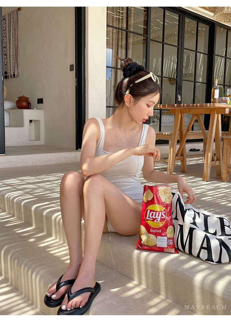 シンプルなデザイン&カラーでビーチに映えるワンピース水着。