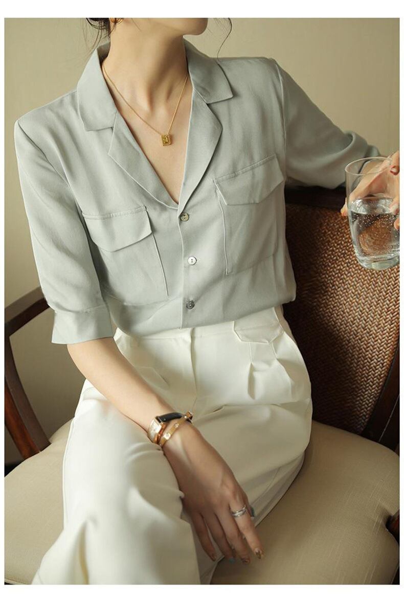 【シャツ】シャツ レディース シャツブラウス ブラウス半袖 白 シャツ 20代 30代 40代 春 夏 秋 トップス カジュアル 可愛い きれいめ シンプル ホワイト 白 ライトグリーン 緑 S M L XL