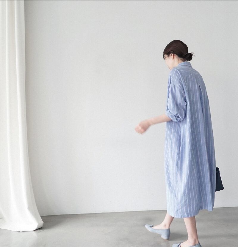 清涼感あるストライプ柄のカジュアルなシャツワンピース。