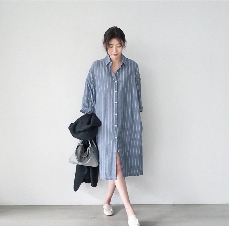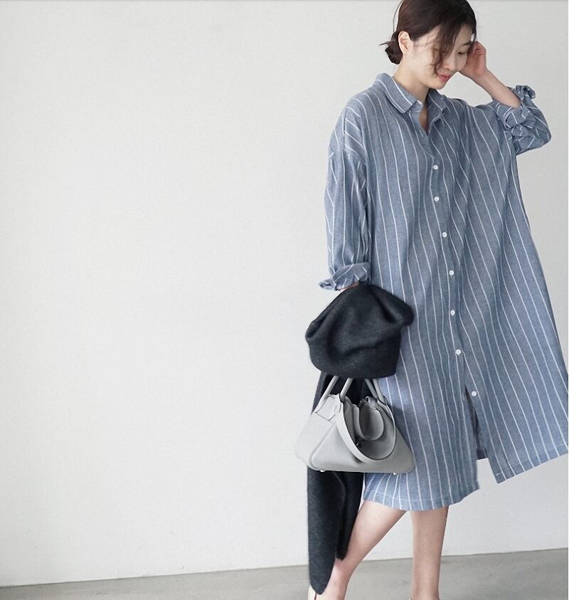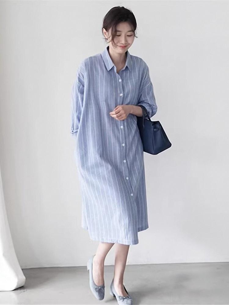 【ワンピース】 大きいサイズ ワンピース レディース おしゃれ 20代 30代 40代 ワンピース 春 夏 秋 ひざ下 膝下 ワンピース 春夏 ストライプ 長袖 七分袖 20代 30代 40代 シャツ ワンピース ワンピースドレス 韓国 ワンピース ドレス ワンピース 大人 可愛い きれいめ S M L XL 2XL