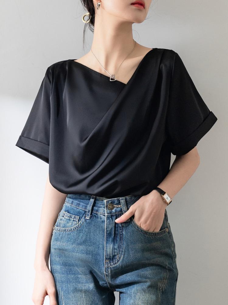 【ブラウス】 ブラウス レディース 大人 可愛い トップス 無地 シャツ ブラウス 韓国 ブラウス 春 夏 秋 20代 30代 40代 シンプル オフィス レディース 長袖 七分袖 体型カバー きれいめ ブラック 黒 S M L XL