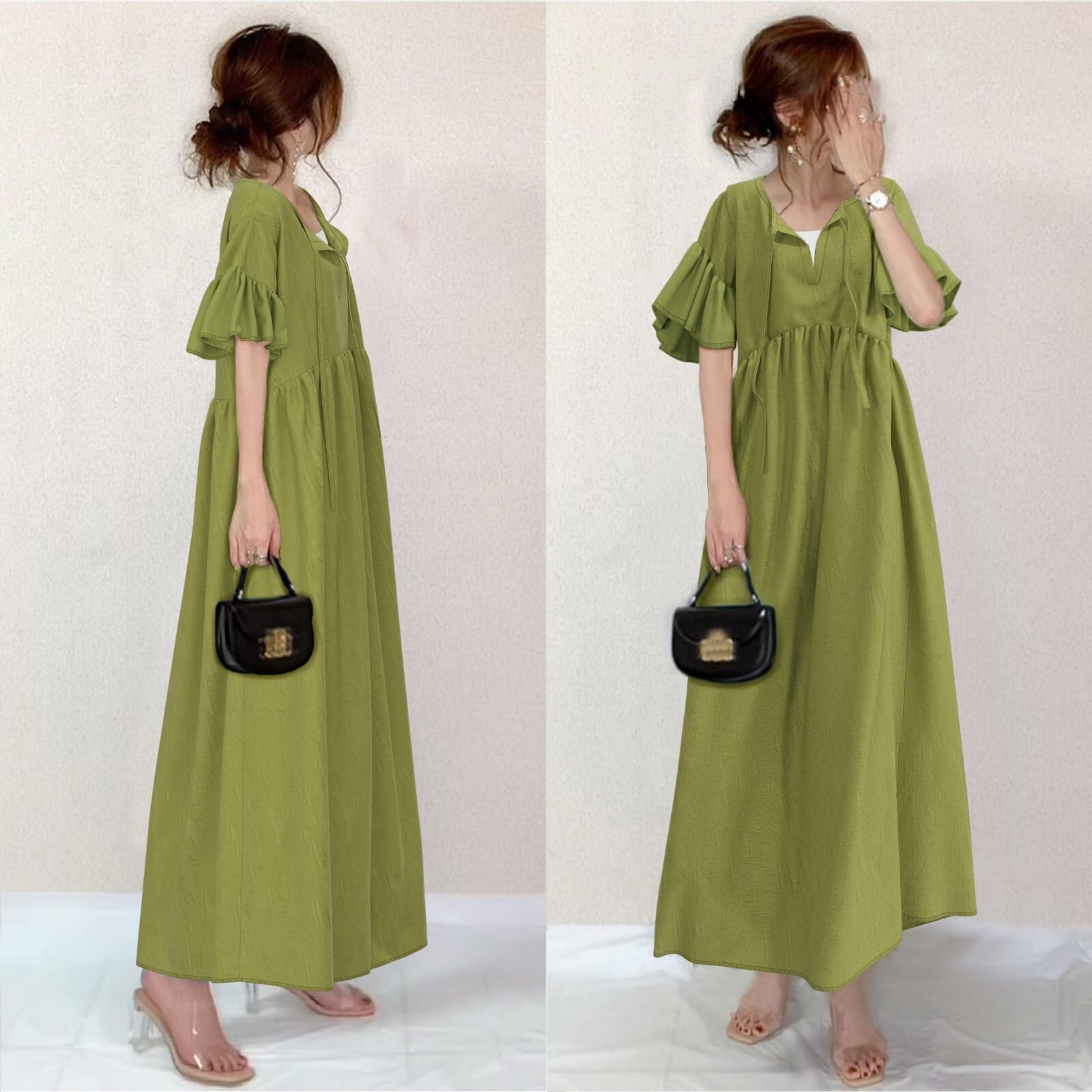 【ワンピース】ワンピース レディース 春 夏 秋 おしゃれ 20代 30代 40代 ワンピース 無地 ロングワンピース 春夏 半袖 マタニティ ワンピース ロング 韓国 ワンピース ドレス ワンピース 大人 可愛い カジュアル きれいめ グリーン 緑 S M L