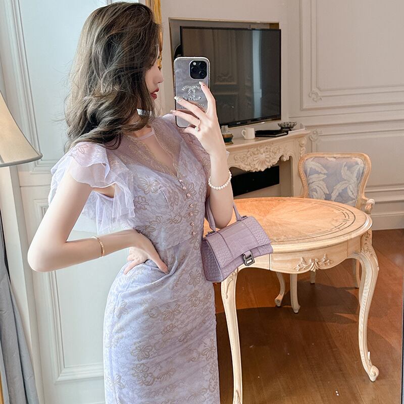 【パーティードレス】パーティードレス 結婚式 卒業式 謝恩会 成人式 同窓会 お呼ばれドレス 結婚式のお呼ばれ お呼ばれ ワンピース ロングワンピース 20代 30代 40代 ワンピ-ス フォーマルドレス 袖あり ドレス ミディ丈 膝丈 体型カバー フォーマルドレス ドレス 二次会 パーティー お呼ばれ フォーマル 総レース フォーマルワンピース シンプル おしゃれ 個性的 パープル 紫 S M L