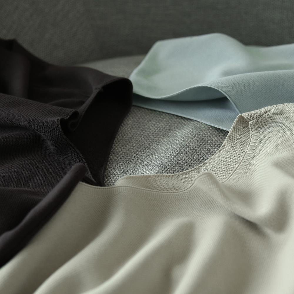 夏でも涼しい!アイスシルク素材のシンプルニット。