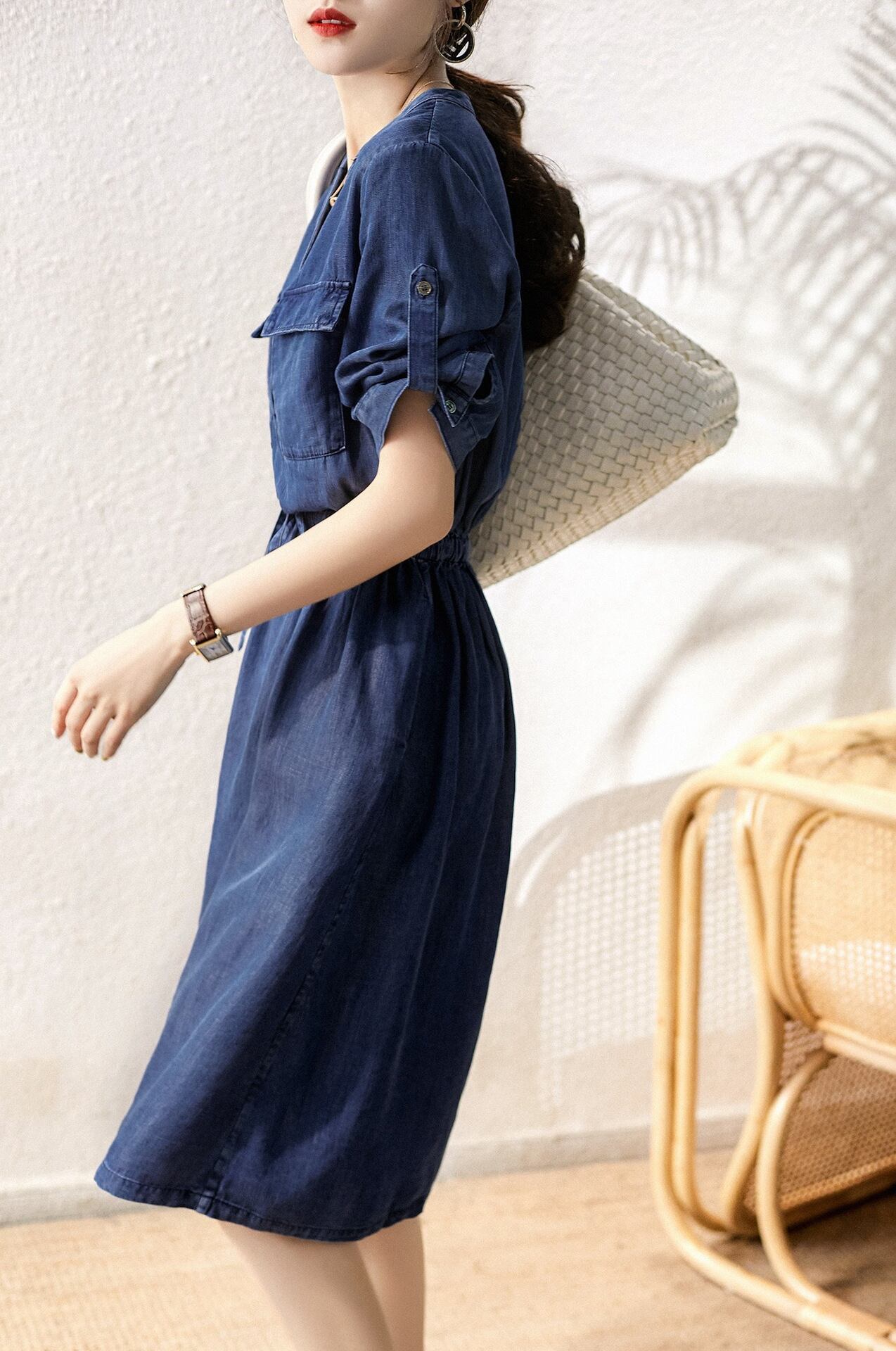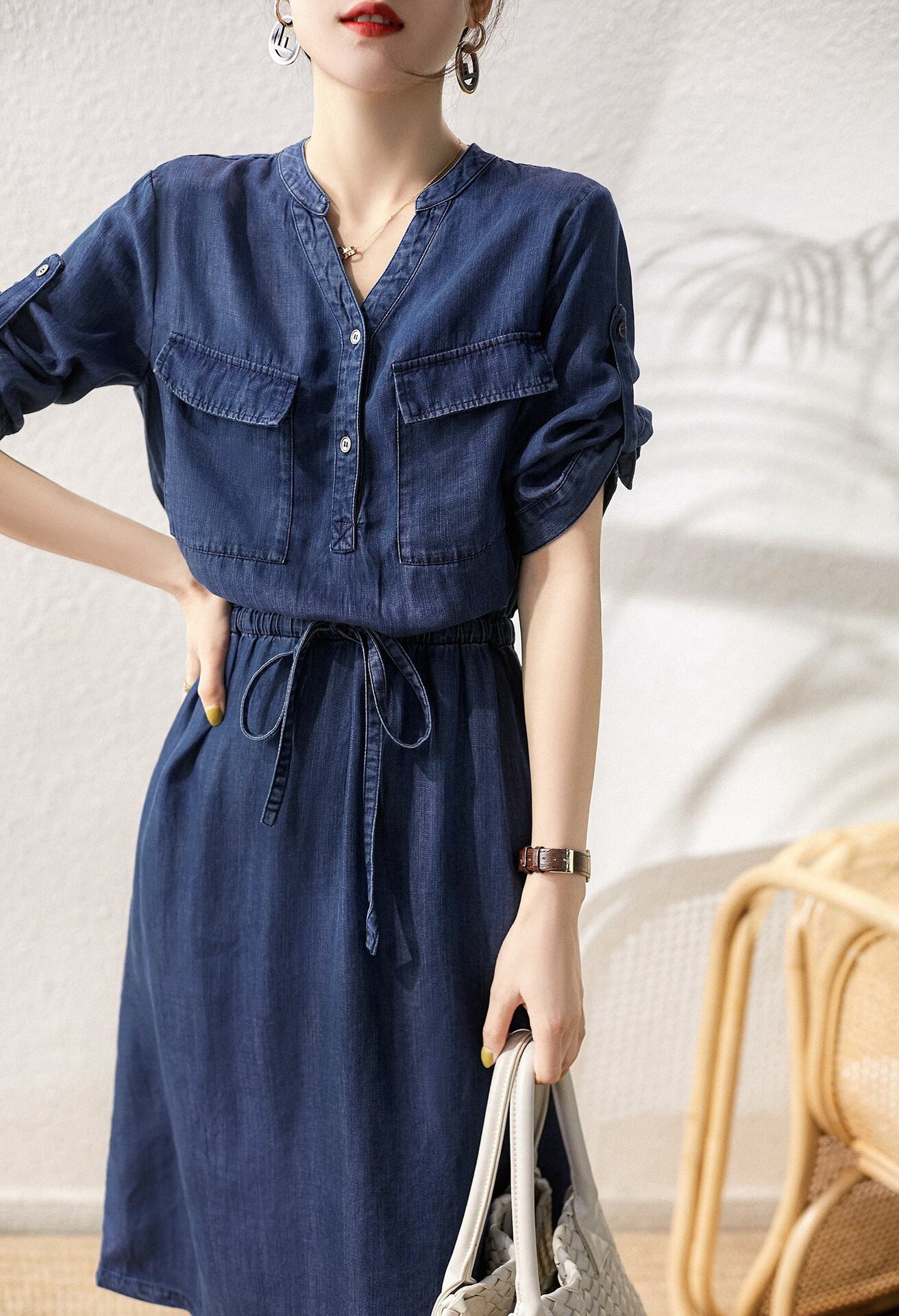 【ワンピース】ワンピース レディース 大人 可愛い 20代 春 夏 秋 30代 40代 ワンピース ミニ丈 ワンピース 春秋 デニムワンピース 長袖 七分袖 シャツワンピース 韓国 ワンピース ドレス 大人 可愛い カジュアル きれいめ ネイビー 青 S M L XL