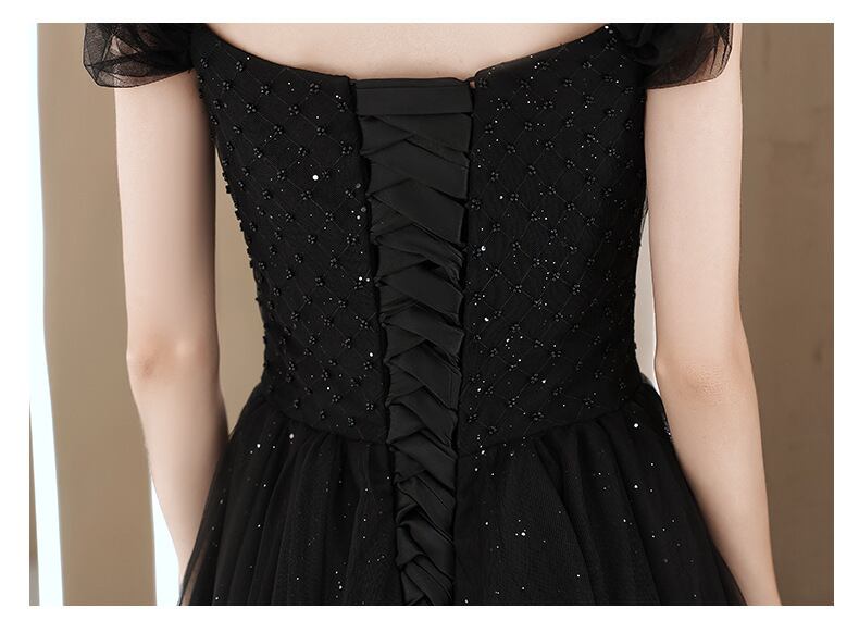 肩のチュールが女性らしくエレガントなパーティードレス。