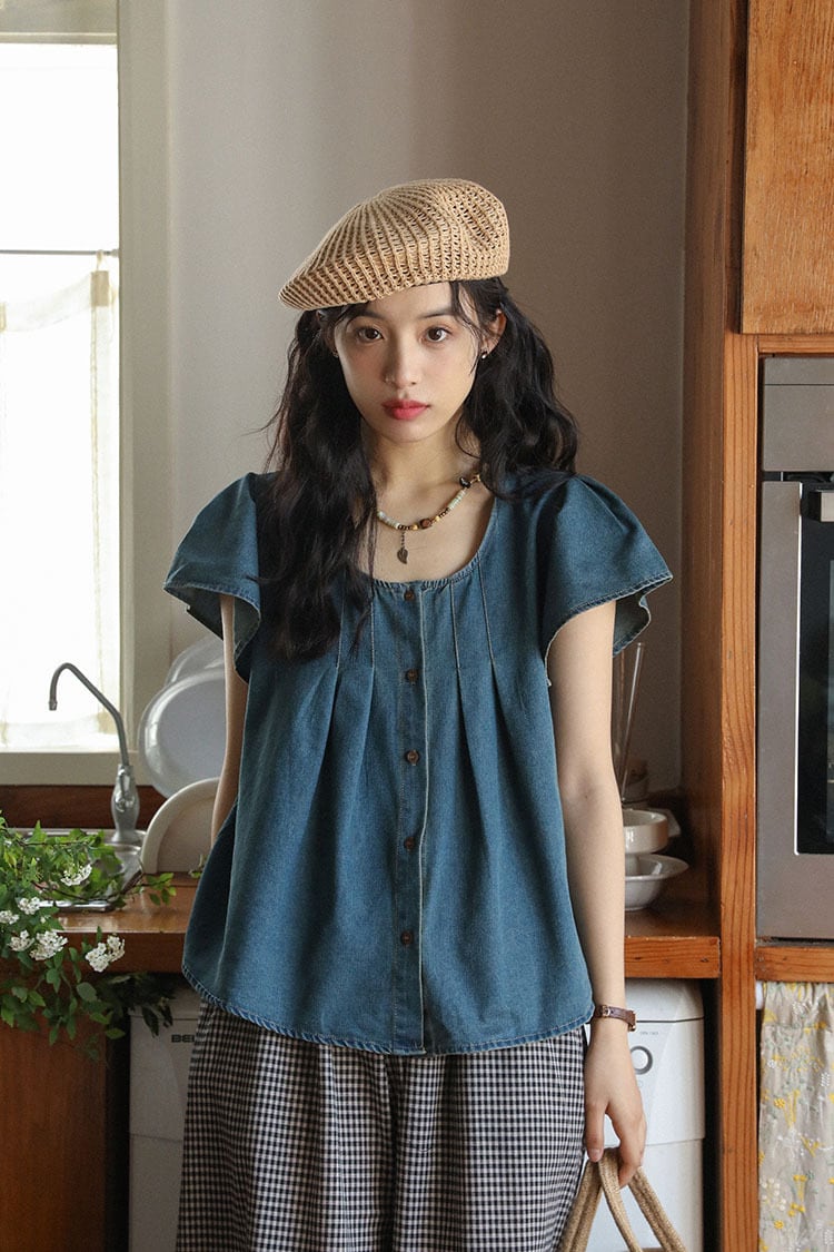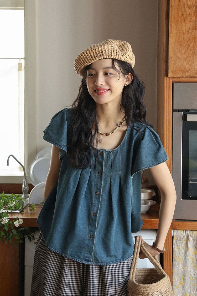 【シャツ】レディース シャツブラウス ブラウス レディース半袖 シャツ レディース デニム シャツ 20代 30代 40代 春 夏 秋 トップス カジュアル 可愛い きれいめ シンプル S M L