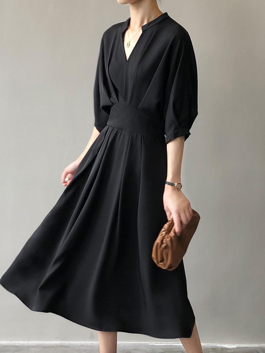 【ワンピース】 ワンピース レディース 春 夏 秋 おしゃれ 20代 30代 40代 ワンピース 無地 ロングワンピース 春秋 半袖 五分袖 シャツ ワンピース ロング 韓国 ワンピース ドレス ワンピース きれいめ ベージュ ブラック 黒 M L
