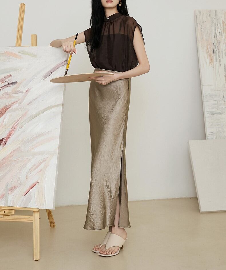 インナーにキャミソールをかさねて透け感を楽しんで。