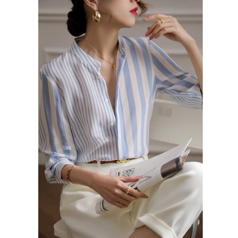 【シャツ】レディース シャツブラウス ブラウス レディース ストライプ 長袖 シャツ 20代 30代 40代 春 夏 秋 トップス カジュアル 可愛い きれいめ シンプル S M L XL