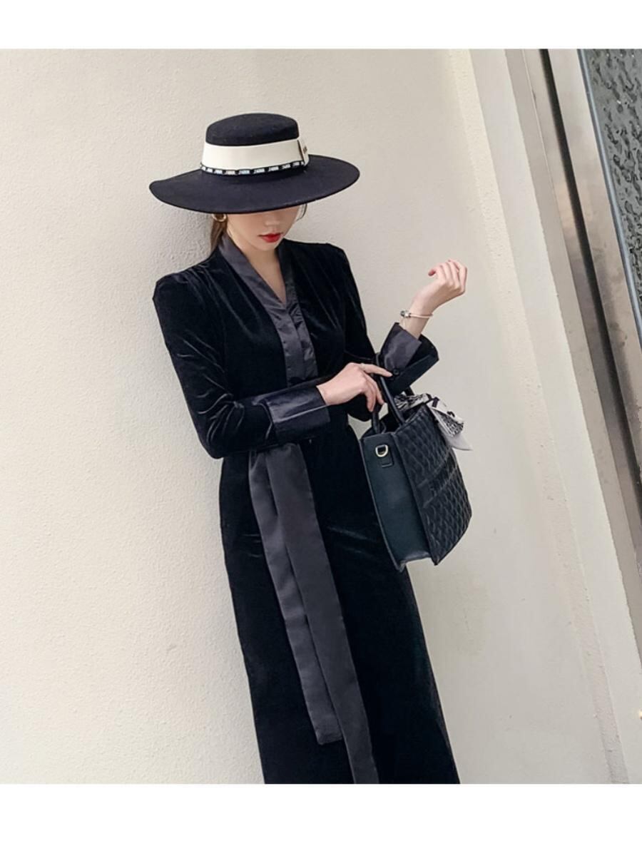 大人かっこいい異素材ミックスベルベット素材のパンツドレス。