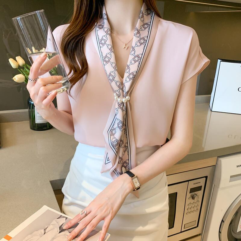 お仕事着におすすめ!大人可愛いスカーフ&パール付きブラウス。