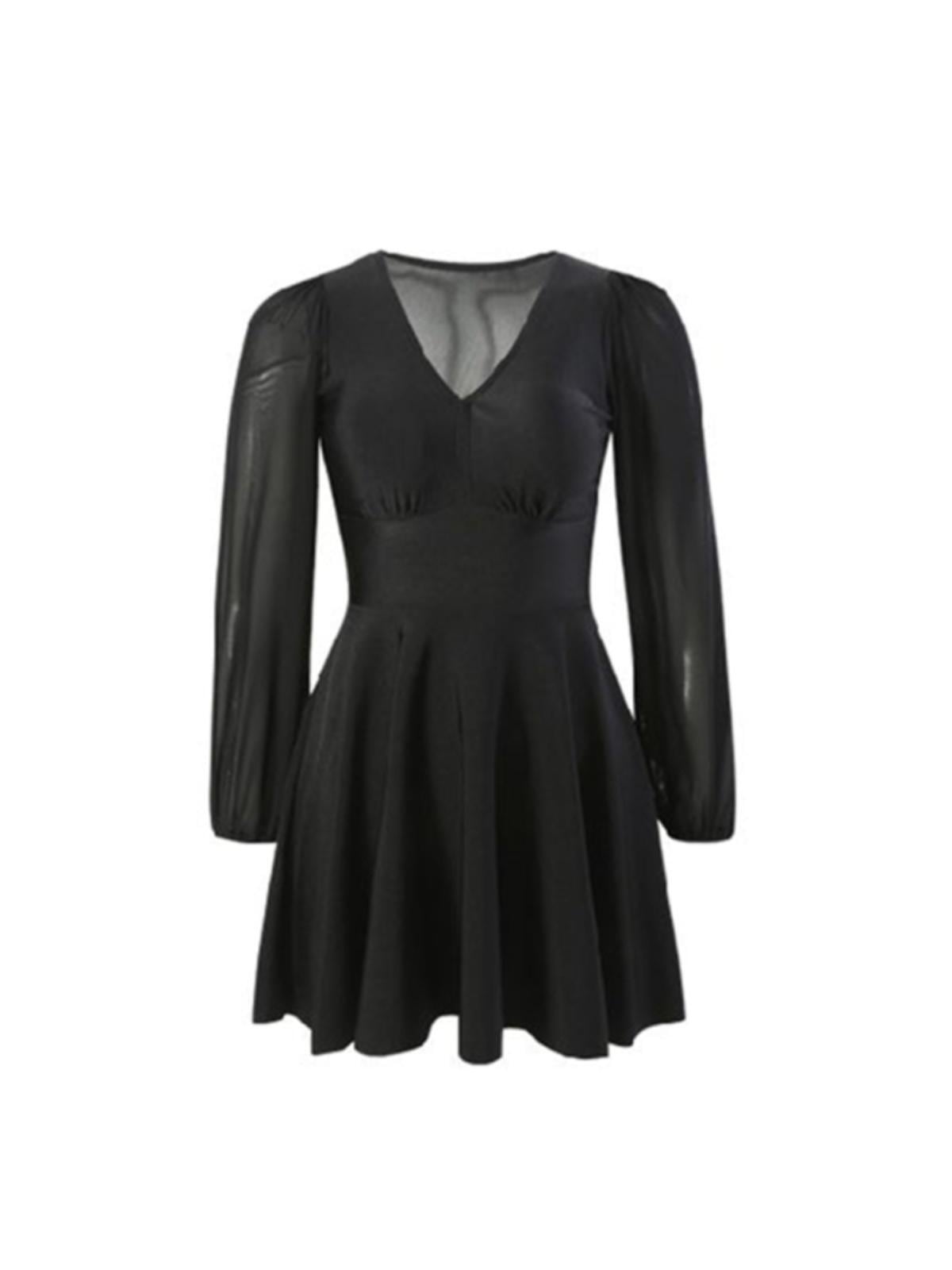 お肌の露出を控えたい方におすすめのお袖付きワンピース水着。