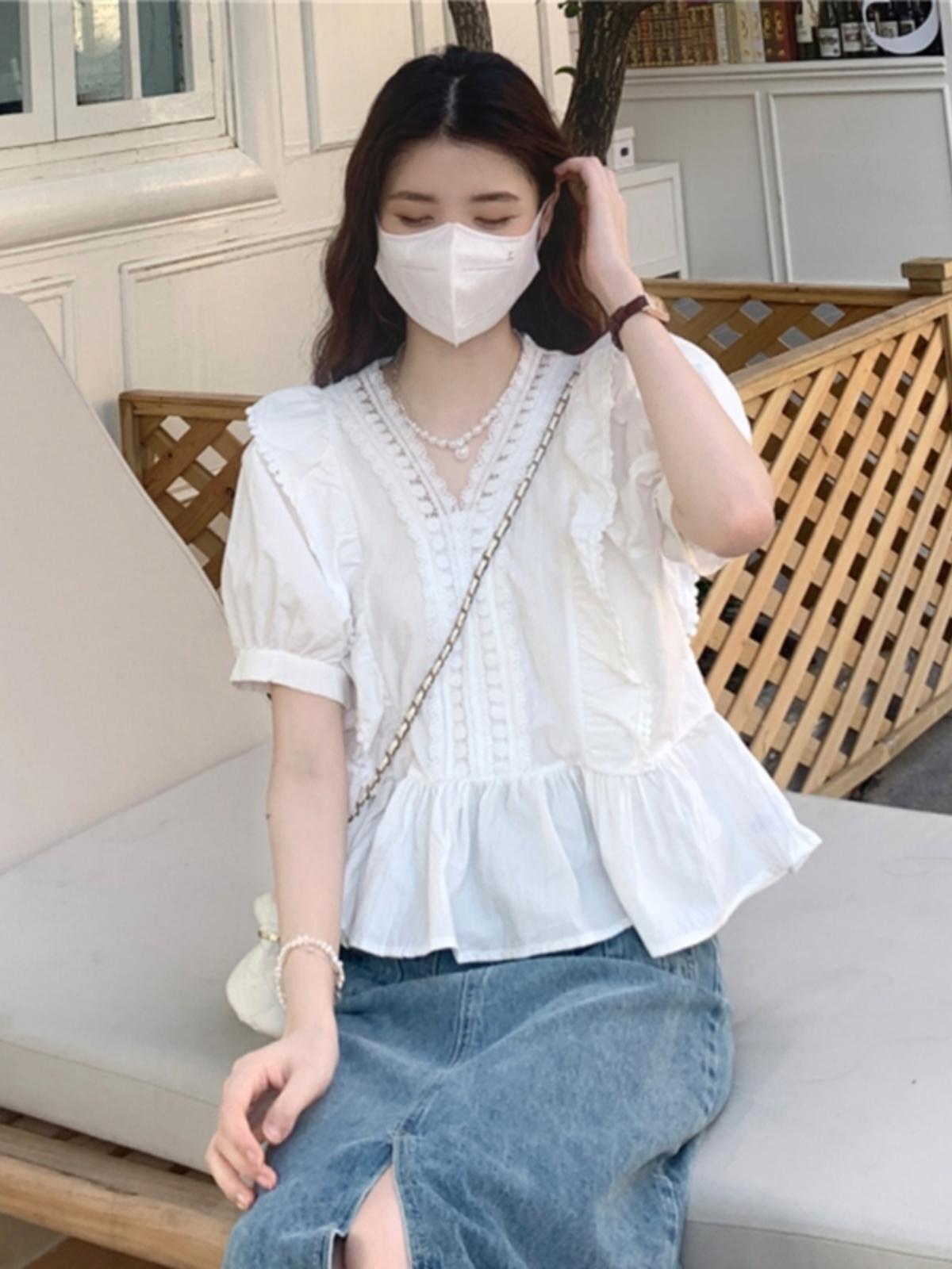 【ブラウス】 ブラウス レディース 大人 可愛い トップス 無地 シャツ ブラウス 韓国 ブラウス 春 夏 秋 20代 30代 40代 シンプルオフィス レディース 半袖 フォーマル 体型カバー きれいめ ホワイト 白 S M L XL