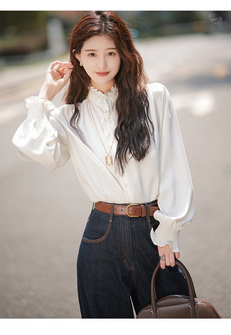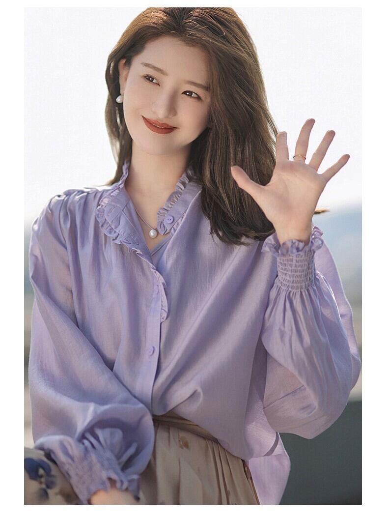【ブラウス】ブラウス レディース 大人 可愛い トップス 無地 シャツ ブラウス 韓国 ブラウス 春 夏 秋 冬 20代 30代 40代 シンプル フリル 白 オフィス レディース 長袖 フォーマル 体型カバー きれいめ ホワイト パープル 紫 S M L XL