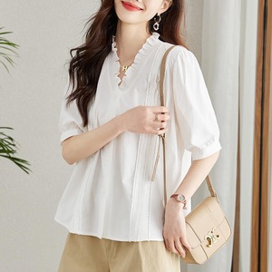 【ブラウス】大きいサイズ ブラウス レディース 大人 可愛い トップス 無地 シャツ ブラウス 韓国 ブラウス 春 夏 秋 20代 30代 40代 シンプル フリル 白 オフィス レディース 半袖 フォーマル 体型カバー きれいめ ホワイト M L XL 2XL