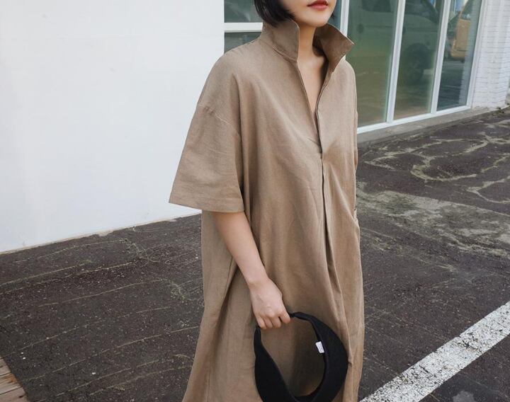 キュートな襟付きのvネックオーバーサイズワンピース。