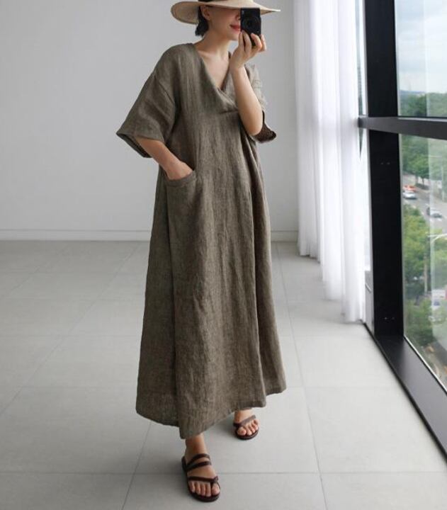 【ワンピース】ワンピース レディース 春 夏 秋 おしゃれ 20代 30代 40代 ワンピース 無地 ロング ワンピース 春夏 半袖 五分袖 ロング 韓国 ワンピース 大人 可愛い きれいめ ベージュ グレー キャメル ネイビー 青 S M L XL
