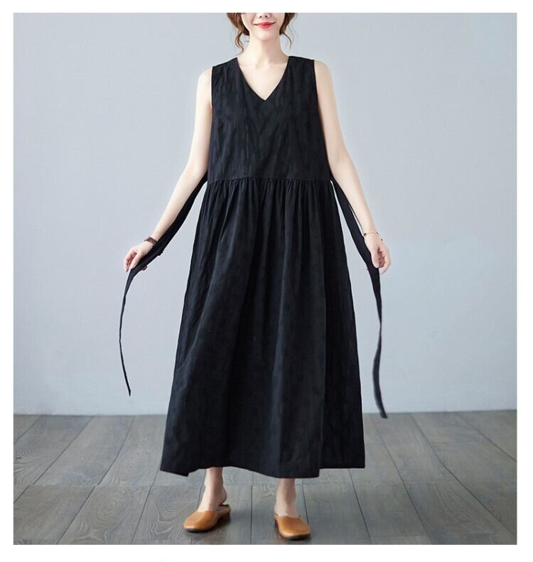 前後どちらでも結べるウエストリボンが可愛らしいvネックワンピース。
