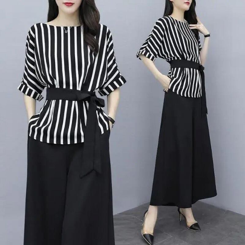 大人かっこいいストライプ柄のツーピースパンツドレス。