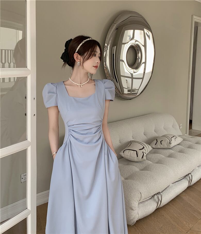 スクエアネックがネックラインを美しく、パフスリーブで気になる二の腕をカバー◎