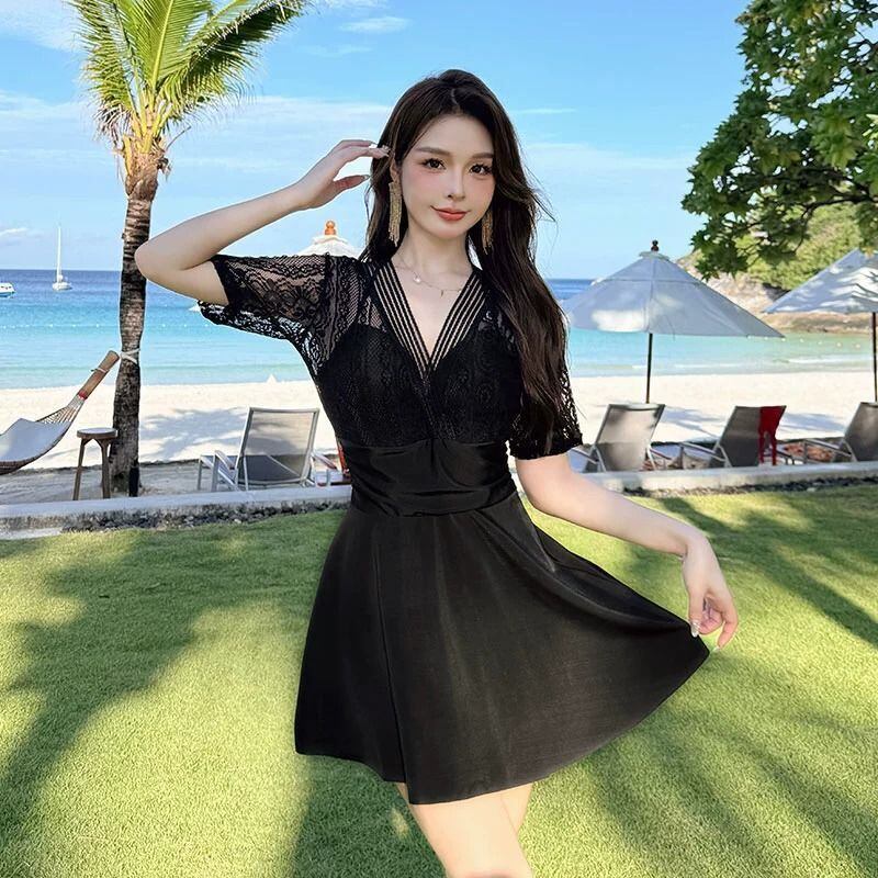 【水着】ワンピース 水着 レディース 体型カバー 韓国 水着 かわいい おしゃれ 水着 20代 30代 40代 オールインワン 水着 ぽっちゃり 水着 ママ 着痩せ 海 ビーチ プール リゾート ブラック 黒 S M L XL