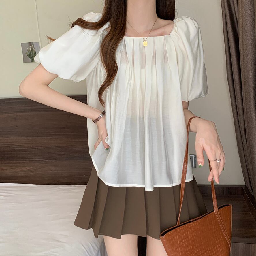 大人っぽいシックなカラーのパフスリーブシフォンブラウス。
