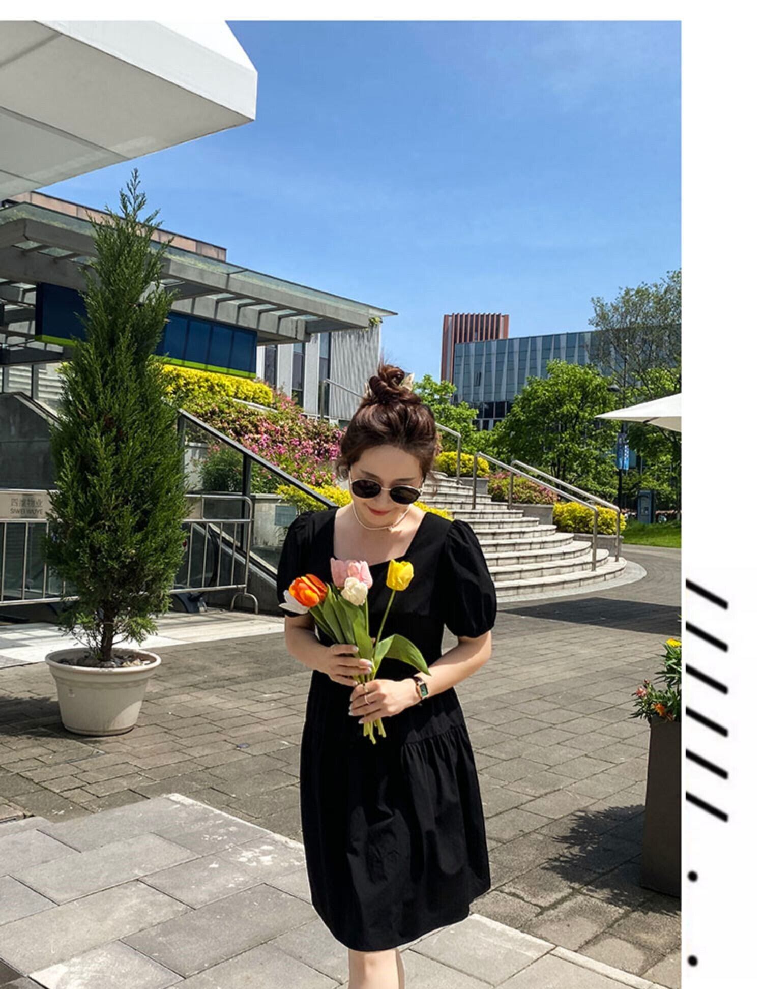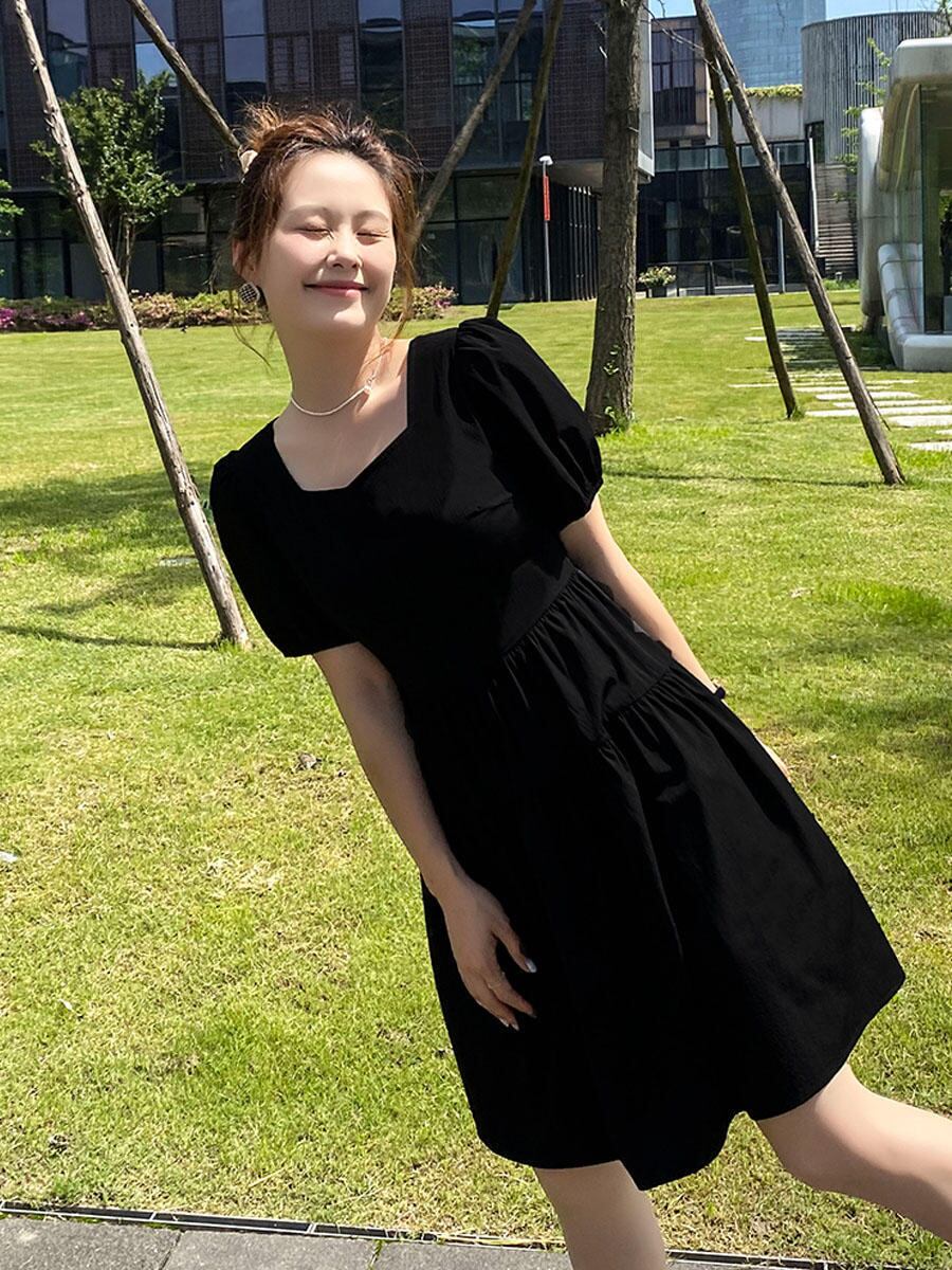 大人可愛いデコルテ華奢見せスクエアネックのワンピース。