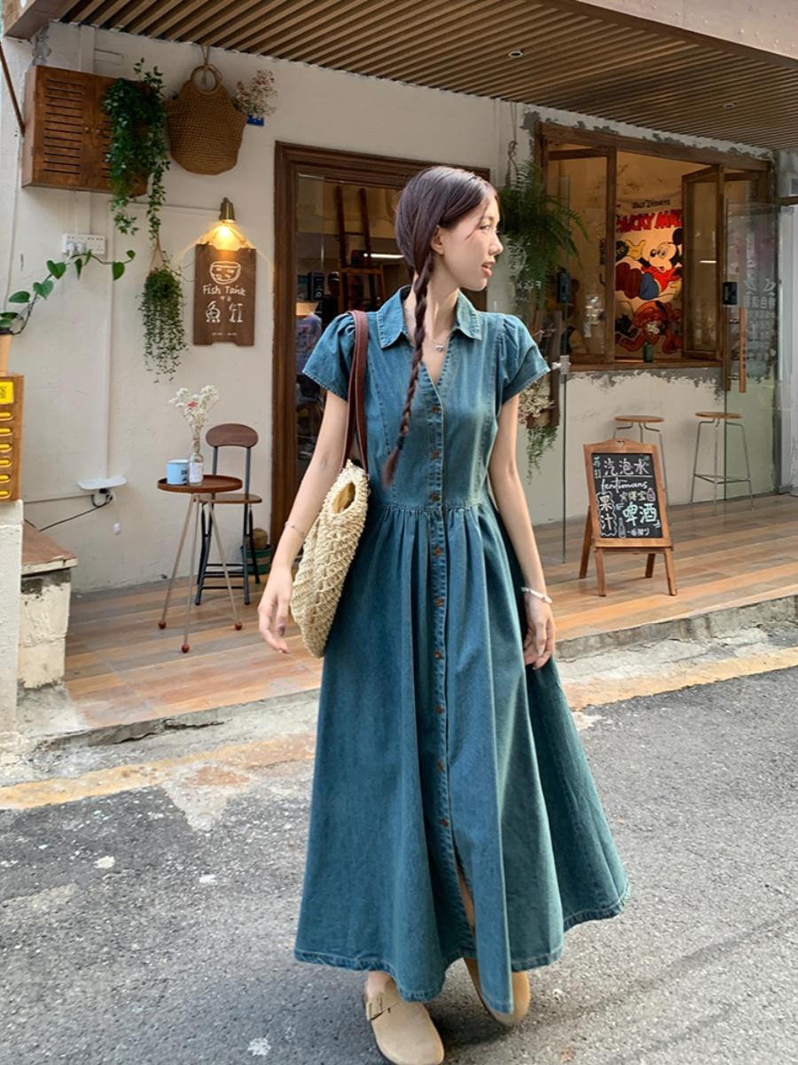 【ワンピース】 大きいサイズ ワンピース レディース 春 夏 秋 おしゃれ 20代 30代 40代 ワンピース ロング ワンピース 春秋 半袖 デニム ワンピース マタニティ ワンピース 韓国 ワンピース ドレス ワンピース 大人 可愛い カジュアル きれいめ レトロ ネイビー 青 S M L XL 2XL 3XL