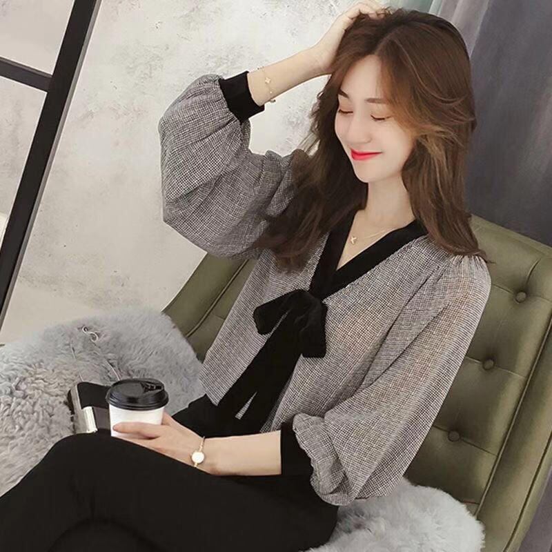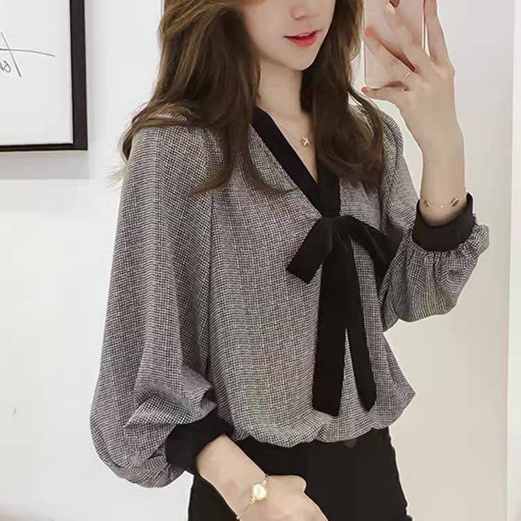 【ブラウス】ボウタイ ブラウス レディース 大人 可愛い トップス シャツ ブラウス 韓国 ブラウス 春 秋 冬 20代 30代 40代 シンプル シフォン グレー オフィス レディース 長袖 フォーマル 体型カバー きれいめ S M L XL