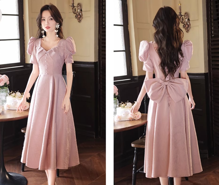 バックの大きなリボンが大人可愛いジャガードパーティードレス。