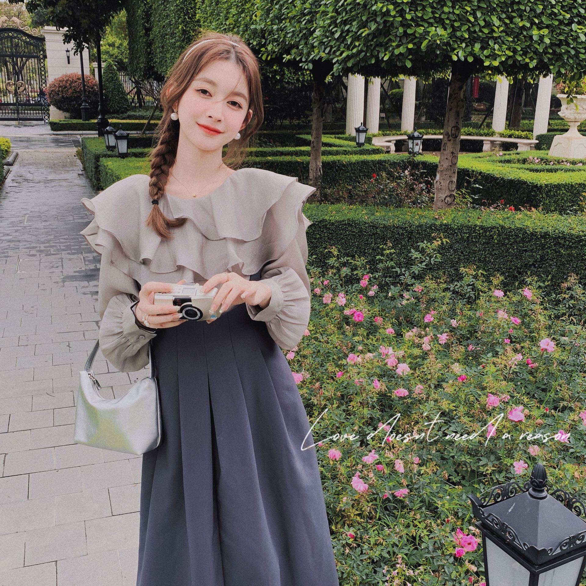 【セットアップ】 セットアップ レディース おしゃれ ワンピース フリル ブラウス グレー 春 夏 秋 20代 30代 40代 きれいめ S M L XL
