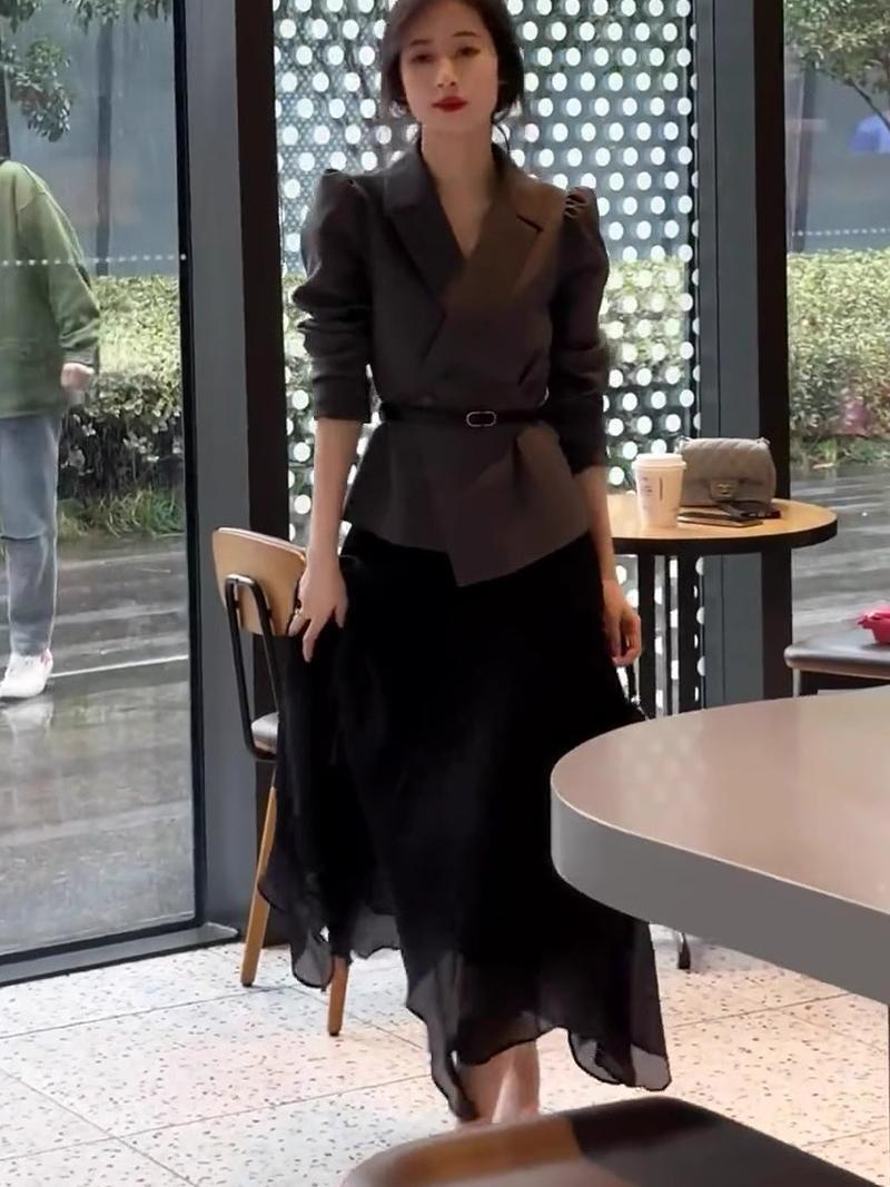 大人エレガントなジャケット+スカートのセットアップドレス。