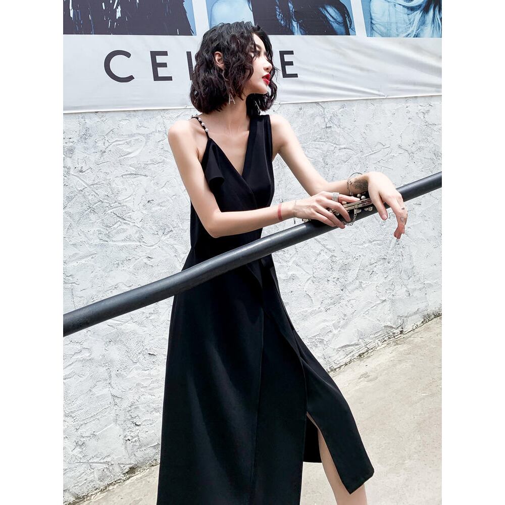 深いスリット入りで足さばきもスムーズ、印象的な足元に。