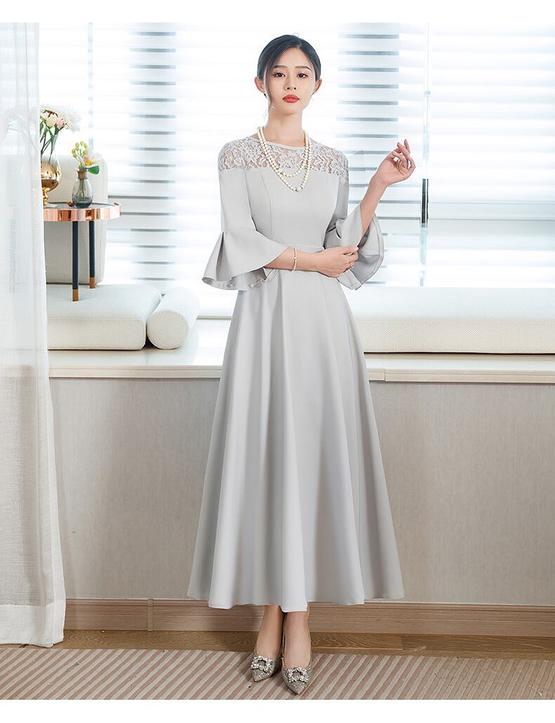 フレアスリーブとデコルテラインのレースがエレガントなパーティードレス。