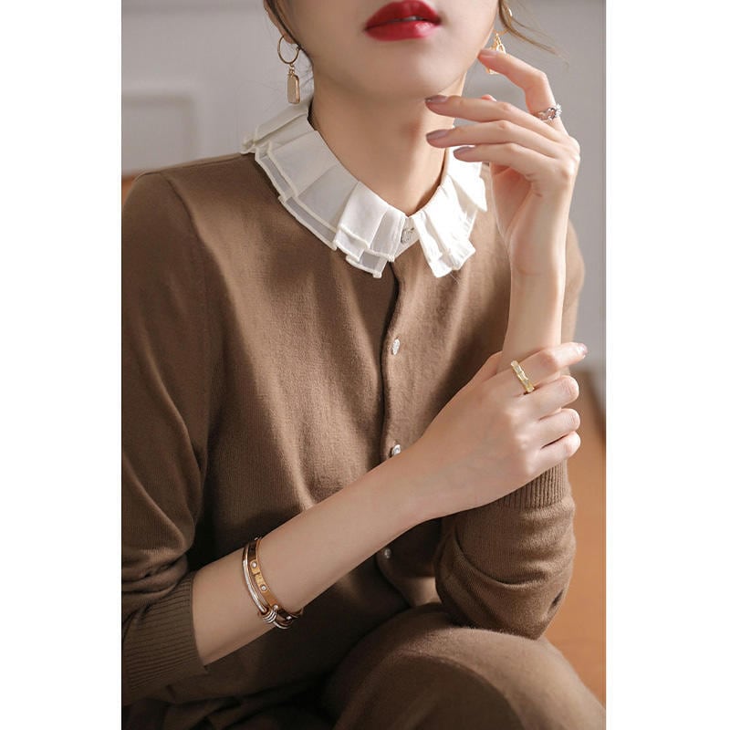 さっと羽織るだけでおしゃれ度高めのフリル襟カーディガン。
