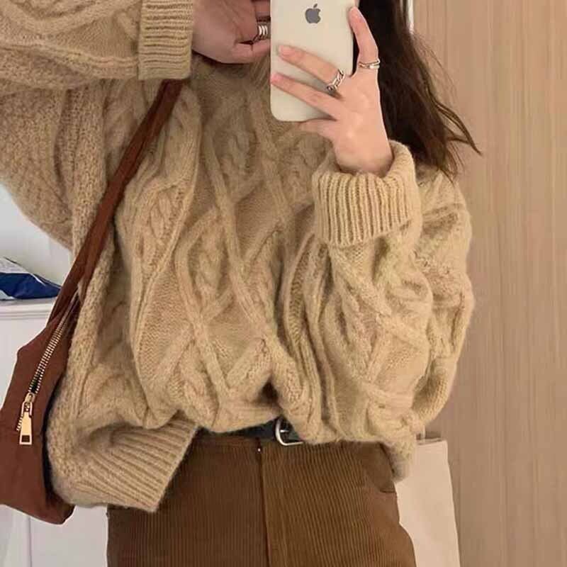 大人可愛いレトロなケーブルニットカーディガン。