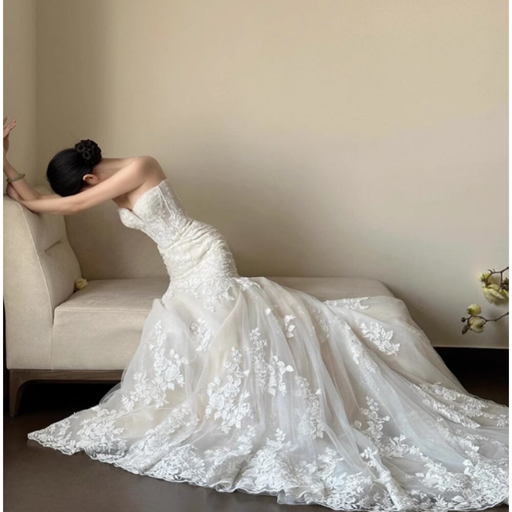 大人の可憐さ引き立つフィッシュテールのウェディングドレス。