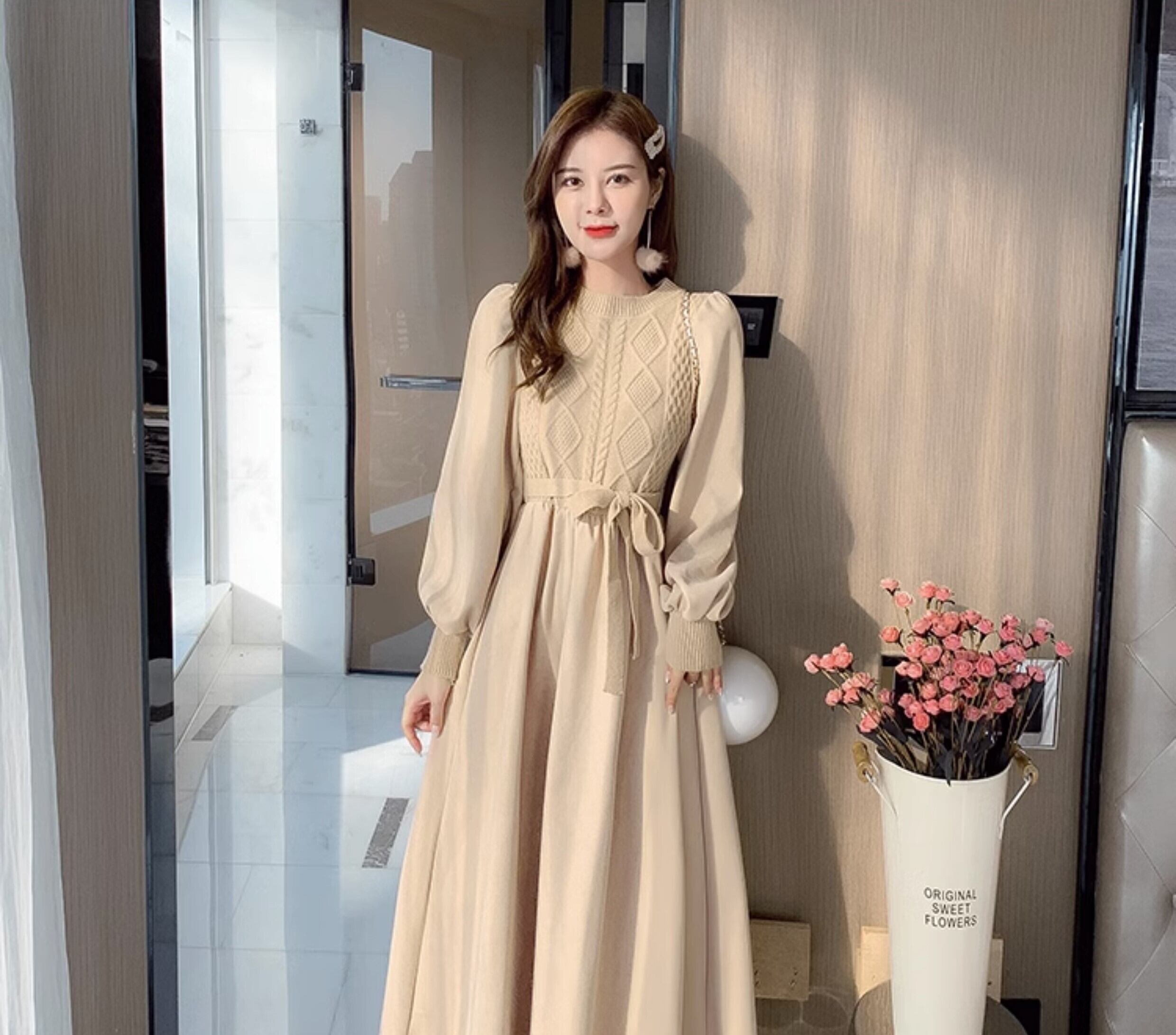 【ワンピース】ワンピース レディース 春 秋 冬 おしゃれ 20代 30代 40代 ワンピース 無地 ロングワンピース 春秋 長袖 マタニティ ワンピース ミモレ丈 ニット ワンピース 韓国 ワンピース ドレス ワンピース 大人 可愛い きれいめ レトロ ベージュ ブラウン アプリコット S M L XL