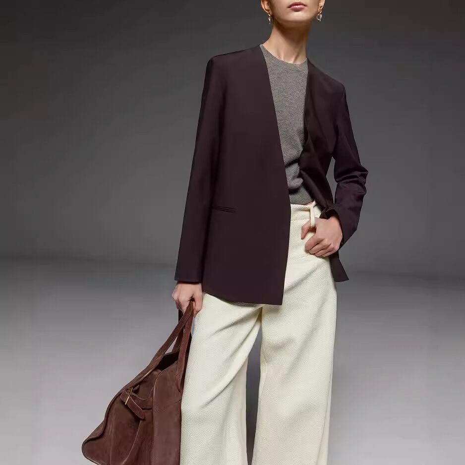 ノーカラーでお顔まわりをスッキリと抜け感あるよそおいに。